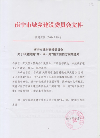 下一篇:《關(guān)于印發(fā)南寧市城鄉(xiāng)建設(shè)委員會2014年打擊工地亂象暨揚(yáng)塵污染治理工作要點的通知》